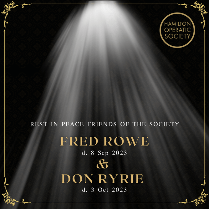 Hamilton Operatic Society was saddened to learn today of the passing of two dear friends of the society, Fred Rowe and Don Ryrie. We send our condolences to both families.