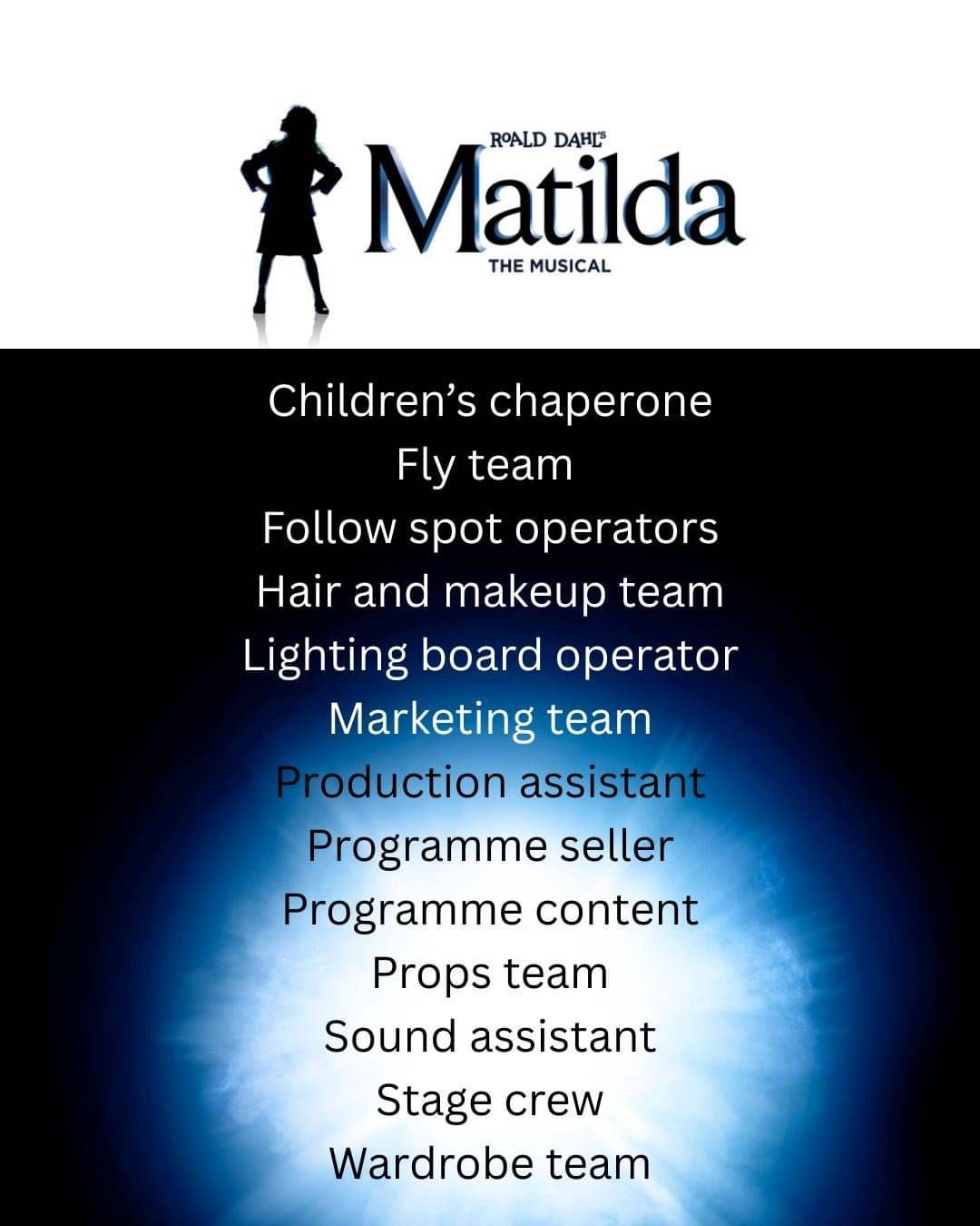 EXPRESSIONS OF INTEREST are now open for crew positions for our production of Matilda.